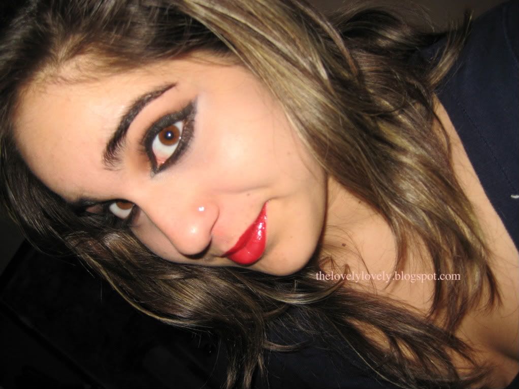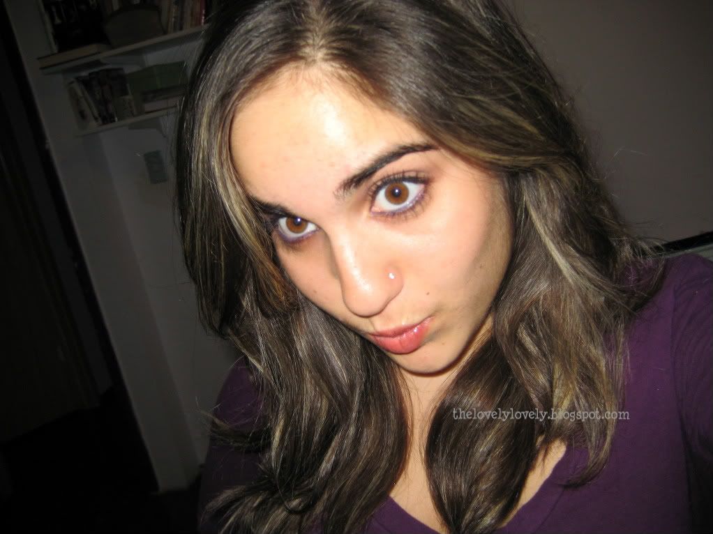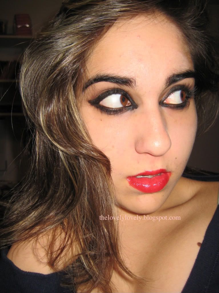 Personally I would not wear this in public but it's fun to recreate, all you need is a load of black eyeliner, sparkley black eyeshadow, and plum eyeshadow [on the lid].